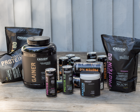 Enough proteinpulver är tillverkat av 98,5% svenskt vassle och innehåller alla essentiella aminosyror. Vi fokuserar på spårbara, hållbara råvaror med hög kvalitet, vilket säkerställer att du får bästa möjliga resultat och mättnadskänsla.